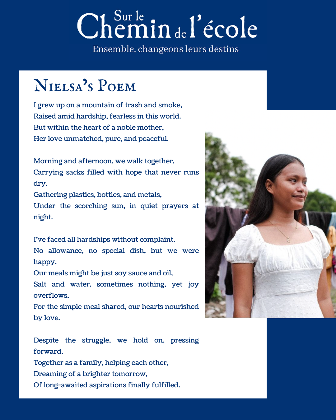 Pour Nielsa, l’éducation dépasse le simple espoir : c’est une promesse, une mission, un véritable héritage.